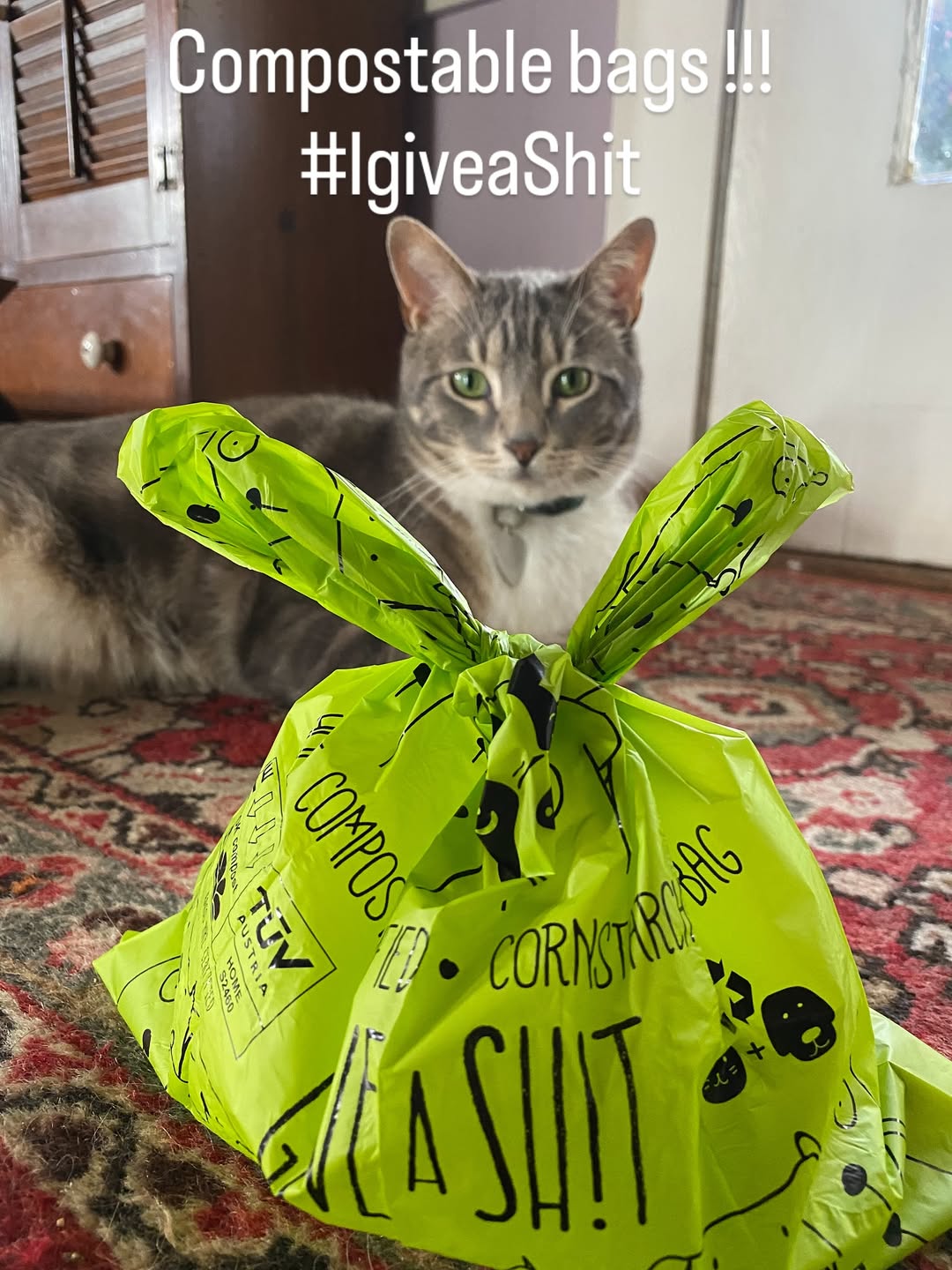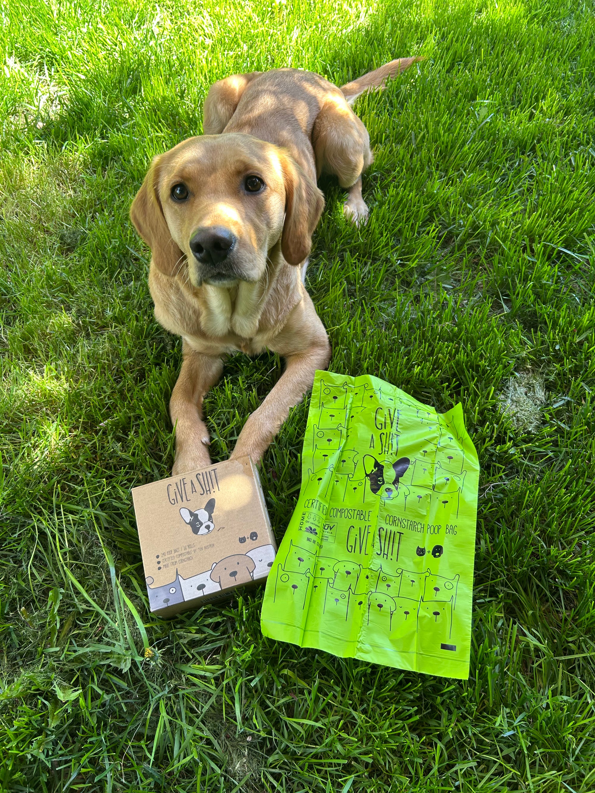 So we started by creating home-compostable poop bags that actually compost and giving back to rescue animals.