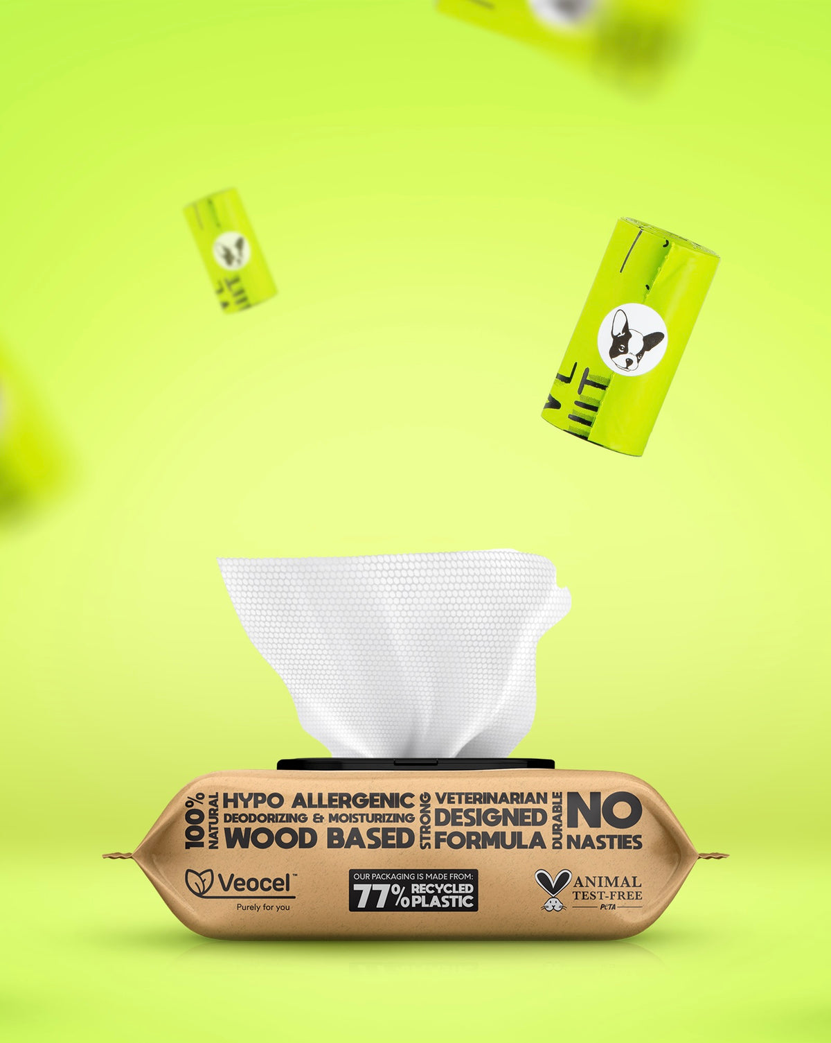 The pet industry dumps millions of tons of plastic into landfills every year, and most brands don’t give a damn. We do. That’s why our TUV AUSTRIA certified, home-compostable poop bags and plant-based pet wipes exist. Not as a trend. Not for clout. But to take real, dirty, radical action.